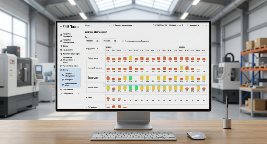 Адаптация под ваши процессы. "всё ВПлане" настраивается под специфику вашего предприятия: типы заказов, оборудование и режим смен — без лишних модулей.